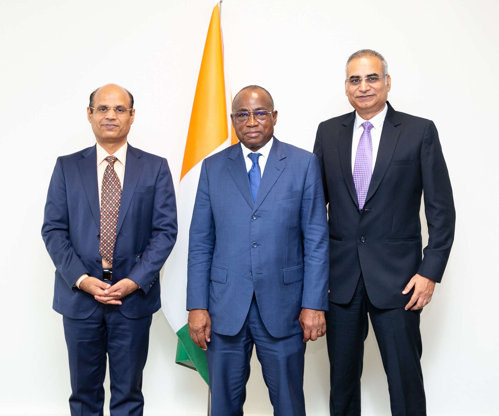 Le Ministre de l’Enseignement Technique, de la Formation Professionnelle et de l’Apprentissage, N’Guessan KOFFI, a reçu en audience, ce vendredi 01 Mars 2024, à son Cabinet, sis au 7ème étage Tour B-Plateau, son Excellence Monsieur Ambassadeur de l’Inde en Côte d’Ivoire, Rajesh RANJAN et Monsieur Vivek SARASWAT, Directeur Général de TATA Côte d’Ivoire.